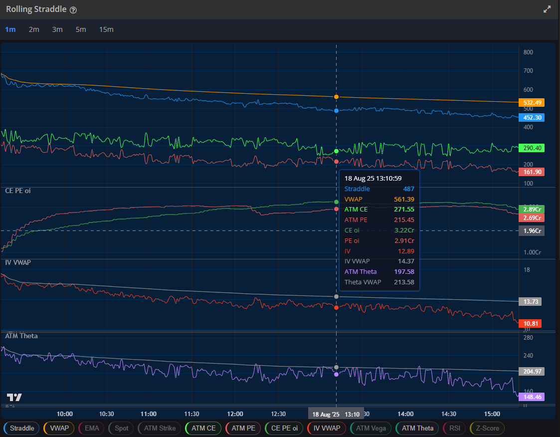 The rolling Straddle chart displays various timeframes for comprehensive analysis: