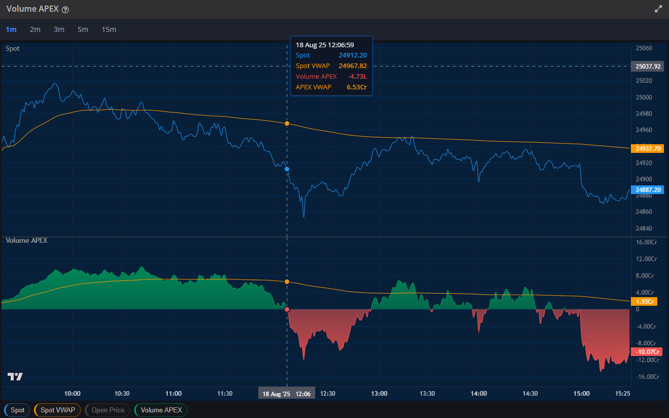 Volume APEX gives insight into market sentiment by factoring in not just how much was traded (volume), but also how directionally significant those trades were (via delta). It’s like weighted net volume.
